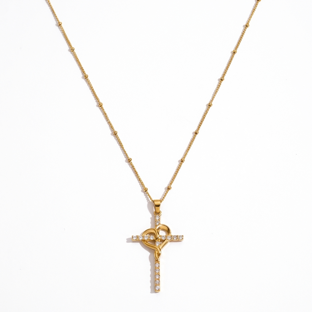 Gold cross necklace with clean crystal detailing. Simple, polished, and easy to layer.